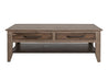 4 Drawer, 1 Shelf, Cocktail Table. The Natural Teca collection captures the essence of transitional design by seamlessly blending metal and wood elements. The occasional tables are crafted from sustainable mango wood and teak veneer, showcasing the natural beauty of teak wood on the tops and providing a bottom shelf for extra storage.