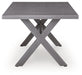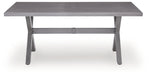 High style crafted for low-maintenance living. Turn your outdoor space into a sweet retreat with this dining table. The casually cool piece entices with an easy-breezy gray finish over an all-weather aluminum frame, for an upscale aesthetic that’s downright durable. Gather round for mealtime, cocktails or game night in the great outdoors.