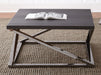 The Aegean Cocktail Table is an example of brilliant contemporary geometrical design and impeccable craftsmanship. Streamlined in design, the square top focuses on architectural excellence while being highly functional. This stylized table has nickel plating that is polished to a gorgeous black nickel finish. The modern top on this table is crafted from Silvershield 3D PVC laminate that ensure its beauty and durability. This geometrical styled table adds a very refined urban feel to your living room.