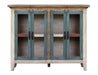 4 Glass Door 50" Console. The Antique collection is meticulously crafted from solid pine wood, featuring a captivating hand-distressed look in a multicolor finish. This collection serves as the perfect rustic addition to your home.