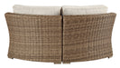 | Details | All-weather resin wicker handwoven over powder coated rust-proof aluminum frame, Zippered cushions covered in high-performing Nuvella™ fabric, 2 throw pillows included, All-weather foam cushion core wrapped in soft polyester, Clean fabric with mild soap and water, let air dry; for stubborn stains, use a solution of 4 oz. bleach to 28 oz. water, Imported fabric and fill, Assembly required | |