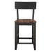The Bermuda 24-inch counter stool merges industrial design with farmhouse flair. Its lustrous black finish and dark acacia seat elevate any 36-inch high counter setting. Whether in the kitchen or paired with the Bermuda Counter Dining Set, this chair offers comfortable seating with a subtle edge. A scooped seat and curved back ensure comfort, while a metal footrest and exposed back bolts add durability and style. Experience stylish, inviting seating for casual meals or entertaining guests with the Bermuda counter stool.