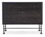 Rustic, organic and comforting, the Big Sky Lateral File is finished in Charred Timber, evoking the restorative and rugged beauty of a forest. Crafted of Pecky Hickory Veneers and metal with a solid-wood edged top, the chest has two drawers, including a top utility drawer and a bottom locking file drawer with Pendaflex letter/legal system. The metal legs and bail pulls are in a dark brushed bronze, and the interior is black.