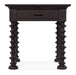 The vintage design of the Big Sky Turned Leg End Table evokes a simpler time and place in the natural beauty of the American countryside. Crafted of Pecky Hickory Veneers with a solid-wood edged top, it’s finished in Charred Timber, inspired by the restorative beauty of a fire-ravaged forest, and accented by a dark brushed bronze metal bar pull.