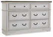 Traditional design. Casual appeal. You can have it all with this dresser. A relaxed two-tone aesthetic merges with ornate profiled drawer fronts and pilasters to give the distinctive piece an allure all its own. Expansive drawers with quality dovetail construction and dark bronze-tone hardware reflect attention to detail from the inside out.