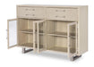 Bliss is a casual contemporary collection offering bedroom, dining, and occasional options. A beautiful mixture of finishes on modern silhouettes gives the group a unique styling with a touch of glam. A Soft Cashmere finish on Quartered Oak in eye-catching veneer patterns mixed with Champagne colored accents adds a high-end look. Clear acrylic hardware finishes off each piece. Simple forms and straight lines add to the more contemporary tone.