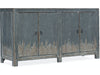 Inspired by the Belgian design aesthetic, the Boheme Four Door Media Console exudes simplicity and authenticity with its heavily distressed antique blue finish with dry brushing and rub through over White Oak Veneers. There’s one adjustable shelf behind each of the four doors, along with a ventilated back panel. Accommodates up to a 60-inch TV.