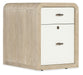 The Brixton Mobile File is a versatile office storage solution that blends modern design with functional storage. Crafted from elm veneers, its two-tone finish of pebble-hued wood and ivory leathered drawer fronts gives a sleek, contemporary aesthetic. The mobile file features one locking file drawer, a utility drawer, and hidden storage with a drop-down touch latch, perfect for organizing your home office essentials. Its casters ensure mobility while keeping your office space clutter-free.