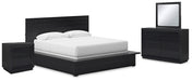 Londer California King Panel Bed with Mirrored Dresser and Nightstand