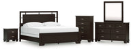 Covetown California King Panel Bed with Mirrored Dresser, Chest and Nightstand