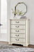 | Details | B980B5: Includes headboard, footboard and rails, Made with hardwood solids, spruce veneer, MDF substrates and cast resin components , Antiqued white painted finish, Polyester upholstery, Button tufting, Foundation/box spring required, sold separately, Mattress available, sold separately, Assembly required, B980B1: Includes dresser and mirror, Made with hardwood solids, spruce veneer, MDF substrates and cast resin components, Antiqued white painted finish, 9 drawers with fully finished interiors, French and English dovetail construction and ball-bearing side glides, Metal bar pulls with aged pewter-tone finish, Mirror attaches to back of dresser, B980-46: Made with hardwood solids, spruce veneer, MDF substrates and cast resin components, Antiqued white painted finish, 5 drawers with fully finished interiors, French and English dovetail construction and ball-bearing side glides, Metal bar pulls with aged pewter-tone finish, B980-93: Made with hardwood solids, spruce veneer, MDF substrates and cast resin components, Antiqued white painted finish, 3 drawers with fully finished interiors, French and English dovetail construction and ball-bearing side glides, Metal bar pulls with aged pewter-tone finish, 110V power supply with dual USB charging ports, Power cord included; UL Listed, | |