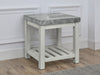 A light and airy side table companion for any room, Canova offers the elegance of a marble top in a more relaxed presentation. The substantial gray marble veneer top is centered on hearty legs and a slotted shelf for a clean, streamlined look that is weighty but not heavy. The Cathedral White finish over Ash Veneers and Poplar solids create a neutral but not demure aesthetic that is perfect for Coastal, Farmhouse, Transitional or just open and airy interiors. Use in a living area as a Side Table or in the bedroom as a Nightstand to provide the right accent for any room.