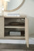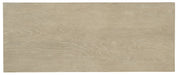 With a tranquil Zen vibe, the versatile Cascade Credenza is crafted of Oak Veneers in a soft taupe finish with slender metal legs. The Terrain finish is dry-brushed for a casual and tactile feel with reeded fronts on the two doors. The pair of doors has soft-close hinges and touch latches and one adjustable shelf behind.