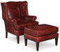 A relaxed version of the classic wing chair silhouette, the Blakeley Club Chair is inviting upholstered in the Covington Bogue handwiped aniline top grain leather with an authentic and soft casual hand, trimmed with vintage nailheads. Legs have a dark wood finish.