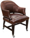 The stylishly-shaped Joker Game Chair silhouette brings class and comfort to game nights. The camel-shaped back complements the shaped seat apron and nailhead accents around the base, sides and back. Covered in the luxurious Isadora Nut aniline top-grain leather, the legs and stretcher are finished in Natchez Brown. Casters provide easy mobility.