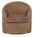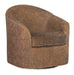 Softly organic, the Remi Swivel Chair has a barrel back, sloped arms and loose seat cushion, covered in a subtly distressed brown leather.