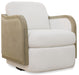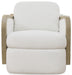 The Wilma Swivel Chair brings breezy sophistication to any relaxed setting. Framed in light wood with a woven rattan exterior, this chair features a smooth swivel base and is upholstered in soft, durable Halston White performance fabric. Its sculpted profile and natural textures make it a perfect fit for coastal, casual, or transitional spaces.