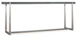 A hand-hammered forged pewter base, stretcher and inlay and a faux Shagreen-wrapped top come together to create an eclectic, mixed-media piece in the Chapman Mixed Media Console Table, inspired by downtown urban living.