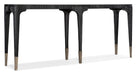 Casual with a modern, sophisticated flair, the Chapman Console has a slender and shaped silhouette and is crafted of Pine Veneers in a Charred Black Finish with the look of burnt wood with hand-hammered pewter ferrules. At a slim 16 inches deep, the console is versatile for a variety of spaces.