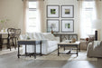 Exuding charm and character, the Ciao Bella Rectangular End Table contrasts a black base with a Flaky White top. Crafted of Poplar and Hardwood Solids and Maple Veneers, the finish is hand chiseled and wire brushed, giving the appearance of aging through the generations. The turned legs and stretchers have a vintage appeal.