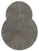 Beautifully scaled and intricately designed, this pair of nesting tables are crafted of Acacia Veneers with a starburst veneer pattern on both tops in a medium natural wood tone and a textured metal frame in a golden brown. The smaller table slides underneath the larger table and has a starburst veneer pattern on both tops.