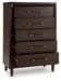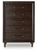 | Details | Made with hardwood solids, mango wood veneer and MDF substrates, Merlot finish, Solid wood pulls with brass-tone metal accents, 5 smooth-gliding drawers with fully finished interiors, French/English dovetail construction and heavy-duty ball-bearing side glides, Top drawer felt lined, Round tapered legs | |