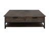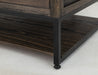 4 Drawer, 1 Shelf Cocktail Table. Inspired by transitional design, the Dark Mita occasional tables elegantly combine the warmth of wood with the sleek industrial style of metal elements. Each piece in this collection is expertly crafted from sustainable mango and melina wood, hand-distressed to create a captivating finish that showcases its natural grain patterns. In addition to its attractive design, the Dark Mita collection offers practical features. The coffee table includes a sturdy metal base for support, a spacious tabletop for everyday use, four drawers with sleek black handles for storage, and a lower shelf ideal for displaying decorative items or organizing books and magazines. This combination of style and utility ensures the Dark Mita collection is a beautiful and functional addition to any living space.