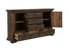6 Drawer & 2 Door, Dresser. Introducing the exquisite Desire Dresser, expertly crafted from solid wood to enhance both style and functionality in your space. This Dresser features a sophisticated multi-step lacquer finish that highlights the natural grain of the wood. With its elegant deep brown color, the collection blends modern and traditional elements, making it a timeless addition to your home. The durable mortise and tenon construction ensures long-lasting quality, while the six spacious drawers come with solid wood fronts and English dovetail joints for added strength. Hafele steel slides provide smooth operation for the drawers. Additionally, the Dresser includes two cabinets for versatile storage solutions, and the sleek metal pulls with a non-chip matte black finish add a touch of modern elegance to this classic piece. For a complete look, pair the dresser with the Desire Mirror.