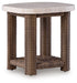 Get back to nature with the relaxed styling of this outdoor end table. Crafted with a sturdy aluminum frame and resin wicker, it offers exceptional durability and style. A smooth tabletop with softly rounded edges holds nibbles, sips and more. And don't forget the handy lower shelf. Sounds like fabulous form and function to us.