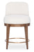 The Eleana Counter Stool offers a perfect blend of luxury and everyday comfort with its Light Caramel walnut veneer finish and Sunlit Bronze circular metal footrest. Featuring a 180-degree return memory swivel, a rounded barrel back, and a beige upholstered seat and back, this stool is both stylish and functional. Ideal for kitchen islands or bar counters, it brings a modern yet warm touch to transitional dining spaces.