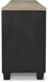 This TV stand with fireplace is rustic, casual contemporary style simply done right. Its two-tone color scheme features a rich brushed black finish accented with a dusty grayish brown wood tone. With two glass-front cabinets (each with an adjustable shelf), an open cubby and a removable center shelf, it offers plenty of storage to house all of your electronic needs. For added viewing pleasure, the electric infrared fireplace insert brings the cozy feeling of a fireplace without the work or worry. It's just the thing for a perfect night in.