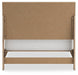 Clean-lined and contemporary—but far from stark—this bedroom package is a fresh style awakening. Pairing a light finish with replicated oak grain and textured beige details that replicate the look of cane, its mixed materials bring a naturally versatile vibe to your bedroom. Sleek, simple hardware plays perfectly with the modern aesthetic.