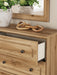 | Details | PCB1075B4: Includes panel headboard and footboard with rails, Made with engineered wood (MDF/particleboard/plywood) and decorative laminate for the right balance of affordability and durability , Warm replicated oak grain finish , Decorative laminate replicates natural or man-made material surfaces with consistent color, pattern and texture, Foundation/box spring required, sold separately , Mattress available, sold separately, Minor assembly required, PCB1075B1: Includes dresser and mirror, Made with engineered wood (MDF/particleboard/plywood) and decorative laminate for the right balance of affordability and durability, Warm replicated oak grain finish, Decorative laminate replicates natural or man-made material surfaces with consistent color, pattern and texture, Dark nickel-tone knobs, 6 smooth-gliding drawers, Drawer interiors are lined with a faux linen laminate for a clean, finished look, Mirror attaches to back of dresser; can also be mounted on wall horizontally or vertically, Safety is a top priority, clothing storage units are designed to meet the most current standards for stability, ATM F 2057 (ASTM International) , Drawers extend out to accommodate maximum access to drawer interior while maintaining safety, Minor assembly required, PCB1075-91: Made with engineered wood (MDF/particleboard/plywood) and decorative laminate for the right balance of affordability and durability, Warm replicated oak grain finish, Decorative laminate replicates natural or man-made material surfaces with consistent color, pattern and texture, Dark nickel-tone knob, 1 smooth-gliding drawer, Drawer interior is lined with a faux linen laminate for a clean, finished look, Open shelf, USB-A and USB-C charging ports, Power cord included; UL listed, Minor assembly required, | |