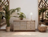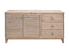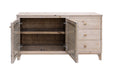 3 Drawer 2 Door Console. Drawing inspiration from ancient Egyptian architecture, the Giza collection, crafted from lightly distressed pine, pays homage to the intricate textures found in Protodoric columns. The gentle hues of these historic columns serve as a guiding influence in shaping the wood tones of this collection.