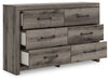 | Details | Made with engineered wood (MDF/particleboard/plywood) and decorative laminate for the right balance of affordability and durability, Weathered gray finish over replicated oak grain, Decorative laminate replicates natural or man-made material surfaces with consistent color, pattern and texture, Large-scale dark colored handles, 6 smooth-gliding drawers, Drawer interiors are lined with a faux linen laminate for a clean, finished look, Safety is a top priority, clothing storage units are designed to meet the most current standard for stability, ASTM F 2057 (ASTM International), Drawers extend out to accommodate maximum access to drawer interior while maintaining safety, Minor assembly required | |