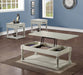 Cottage styling in a Lift-Top Cocktail Table set that lets you work or eat while seated on your Sofa. The Hemingway Collection features classic cottage design like turned legs, plank tops, and an alabaster finish. The plinth base offers a sturdy foundation to anchor the Lift-Top convenience of the Cocktail while offering additional storage or display options in the End and Sofa Table. Two storage pockets underneath the lift-top offer convenient storage for remotes or other items.