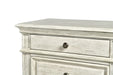 Highland Park features vintage styling in a classical bedroom collection. Sturdy construction using hardwood solids and veneers in a distressed rustic finish. The nightstand offers three drawers with side mounted roller bearing drawer glides for smooth open and closing and a convenient USB and electrical port on the back. Gorgeous shaped moldings and framed drawer fronts accented by soft pewter drawer knobs, create an elegant farmhouse style.
