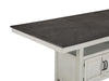 Counter-height table in a fashion-forward two-tone finish. Oil-rubbed nickel hardware completes the neutral transitional look that features relaxed styling that can be dressed up or down. The Counter Table features two doors in the base for hidden storage and a shelf for storage or display. The 20-inch leaf extends the table to a full 80-inches for seating up to eight.