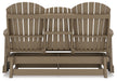 Drift away from everyday worries and into outdoor bliss with this glider loveseat. Dressed in an inviting driftwood hue, the Adirondack-inspired design has a classic feel. It weathers sunny summer days and cozy winter nights with durable MEGA-TUFF® HDPE material. A drop-down console with integrated cup holders keeps refreshments and snacks within easy reach. With the console snapped into the back, this loveseat has even more room for enjoying lazy days in the shade.