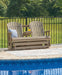 | Details | Made of MEGA-TUFF® HDPE (a high-density polyethylene), which gives the wood look you love and the weather resistance you crave, Stainless steel hardware, Designed to withstand the harsh elements of the outdoors, Includes drop-down table with 2 cup holders, Gentle gliding motion, Assembly required | |