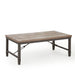 - Styling details include simulated plank top, riveted iron sides, plank effect top and industrial styled undertop stretchers