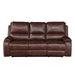 Superior comfort and style are the hallmarks of this motion set. Featuring a leather-like cover with baseball stitching, this ensemble comes with a Sofa with a drop-down console & USB charging station. Antiqued brass nailhead trim and padded arms complete this ultimate motion package.