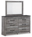 | Details | B1290B4: Includes king panel headboard/footboard and rails, Made with engineered wood (MDF/particleboard/plywood) and decorative laminate for the right balance of affordability and durability, Smoky gray finish over replicated oak grain with authentic touch, Decorative laminate replicates natural or man-made material surfaces with consistent color, pattern and texture, Foundation/box spring required, sold separately, Mattress available, sold separately, Assembly required, Bed is compatible with an adjustable base, B1290B1: Includes dresser and mirror, Made with engineered wood (MDF/particleboard/plywood) and decorative laminate for the right balance of affordability and durability, Two-tone look: smoky gray replicated oak grain accented with rustic charcoal finish; replicated oak grain with authentic touch, Charcoal finish over replicated oak grain with authentic touch, Decorative laminate replicates natural or man-made material surfaces with consistent color, pattern and texture, Large-scaled handles in a dark hue, 6 smooth-gliding drawers with dovetail construction, Drawer interiors are lined with a faux linen laminate for a clean, finished look, Framed front and pilasters, Mirror attaches to back of dresser; can also be mounted on wall horizontally or vertically, Safety is a top priority, clothing storage units are designed to meet the most current standard for stability, ASTM F 2057 (ASTM International), Drawers extend out to accommodate maximum access to drawer interior while maintaining safety, Assembly required, | |