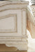 Elevating the art of traditional cottage styling, this beautiful bed with dresser and mirror is your dream bedroom retreat realized. Affording curvaceous beauty, the brilliant crafting of this set wows with dramatic scalloped details. The distressed white finish complements both the tufted upholstery on the headboard and the two-tone aesthetic on the dresser for heirloom appeal. Create the cottage bedroom you’ve always wanted with this romantic bedroom set.