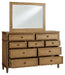 | Details | B895B6: Includes upholstered panel headboard, footboard, rails and slats, Made with hardwood solids, hickory veneer and MDF substrates, Light brown wood-tone finish, Polyester upholstery, Foundation/box spring required, sold separately, Mattress available, sold separately, Assembly required, B895B1: Includes dresser and mirror, Made with hardwood solids, hickory wood veneer and MDF substrates, Light brown wood-tone finish, Dark bronze-tone drawer pulls, 9 drawers with fully finished interior, dovetail construction and heavy duty ball-bearing side glides (top drawers felt lined), Mirror attaches to back of dresser, B895-93: Made with hardwood solids, hickory wood veneer and MDF substrates, Light brown wood-tone finish, Dark bronze-tone drawer pulls, 3 drawers with fully finished interior, dovetail construction and heavy duty ball-bearing side glides (top drawer felt lined), 110V power supply with USB-A and USB-C charging ports, Power cord included; UL Listed, | |
