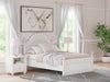Fit for a princess. This full upholstered panel bed’s crisp matte white finish pairs with charming ornate beading and sumptuous button-tufted upholstery—perfect for your girly girl. Decorative ball tops and multicolored LED lighting in the headboard are the crowning touches to make your little one feel like royalty.