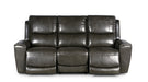 Contemporary styled collection constructed in leather with power leg rest and power articulating headrest. Laurel features both styling and convenience with USB charging port on the control panel along with a home button to return the piece to its original position. The sofa and loveseat feature dual reclining seats and the loveseat feature a console with cup holders and hidden storage.