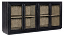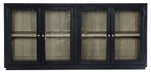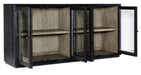 With the aura of a rustic mountain cottage, the Linville Falls Server has four wood-framed doors with seeded glass inserts and two adjustable shelves behind each pair of doors. Crafted of Pine Veneers, the Server has a charred black finish achieved through Shou Sugi Ban, a Japanese technique that creates a look resembling burnt wood. The interior is finished in Mink, a soft smoked gray. Textured metal par pulls are in an antique pewter finish.