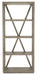 With a rustic, weathered finish, crisp lines and an organic grain pattern, the Wisemans Etagere has a classic X-back and chic silhouette with four fixed shelves. Crafted of Oak Veneers, the etagere is finished in the soft smoked gray Mink. Anti-tip hardware is included.