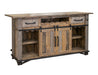 2 Drawer 2 Doors Bar. The Loft Brown Collection is constructed using pine wood that has been hand-stained and distressed, complemented by hand-forged iron hardware. This beautiful collection features a wide range of high and low finish colors, making it a striking addition to any room décor you choose to design.